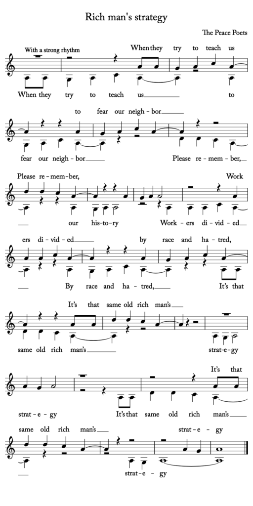 Music is sometimes more effective than words This is another of the Peace Poets short chants. They call this “a Deescalation song to honor the strength of our love.” Non violence is in its essence a method of communication by taking down walls and, if possible, making friends with the enemy and convincing them to change their ways. We always hope for that possibility. Often, we can do this work better through music than we can by yelling and arguing. Here‘s an interesting clip from The Tennesseean showing a confrontation at the No Kings demonstration in Nasheville between the police, a group from The Proud Boys and a crowd of demonstrators. A lot of protestors were yelling and swearing; but a brass band stepped up and started playing O Bella Ciao. By the end of the song, the tension had dissipated and everybody, even the Proud Boys, were clapping and cheering for the music.