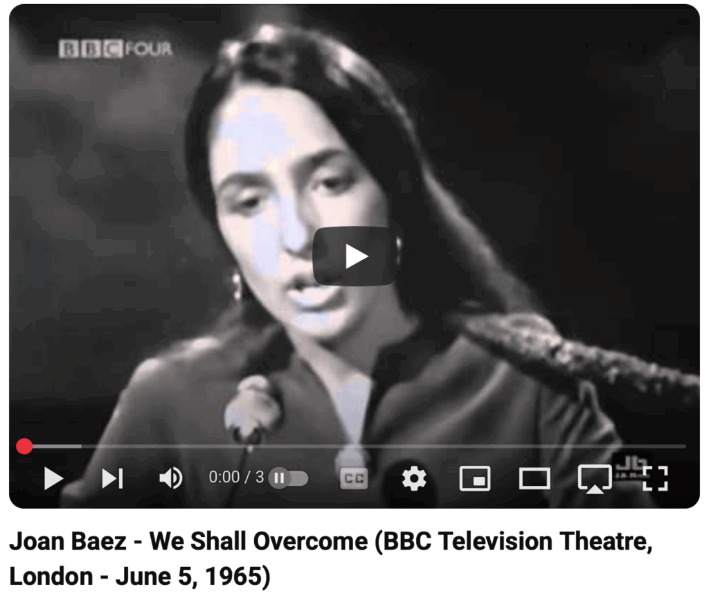 Here is a recording from 1965 of Joan Baez (who else?) singing We Shall Overcome.